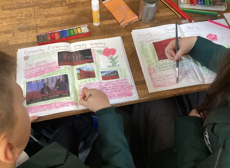 Secondary students at Valley Park School studied Paul Cummins and his ceramic poppies display at the Tower of London, and made their own clay poppies.